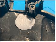 - Place the board into the front of the case of the OG controller. Using Bluetack or something similar, Offerup the back of the case to work out the position of where to drill the hole for the Status / Power LED. It should press in giving an impression so you can see where to drill. Pick a drill bit that is just slightly larger than the LED and drill where the indentation is.