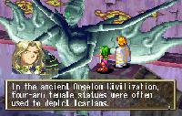 The mysterious Liete awaits at Alent. The enigmatic Puffy accompanies Sue wherever she goes. Lastly, Darlin is one of the many non-human denizens of Grandia.