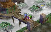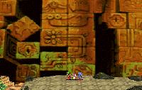 that can be rotated and zoomed at will. Character and enemy sprites are then overlain on the 3D world to make the scenes come to life. The addition of the third dimension affords the use of depth in the environments: hills, cliffs, and valleys; minecar rails that ran higher or lower relative to other tracks, and so on. In this way, the player initially feels right at home with a view that looks comfortably familiar, but must quickly learn to constantly rotate the viewpoint to catch enemies in hiding, spy treasures only visible from certain angles, judge heights, and evaluate other geometric details to plot their best course forward.