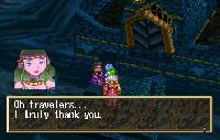 The second optional dungeon is also found to the west but is accessible from the second part of the Zil Desert. This dungeon is very small but has perhaps the most charm. Justin and company are greeted by a mysterious Lady at the castle entrance, begging for help but also warning of a curse on the castle. Once inside, there are several rooms to visit and loot to collect. Really simplistic and set to lure the player to lower their guard, just in time to battle the formidable Lord’s Ghost boss. This guy’s TOUGH, with strong multi-character attacks and cancelling moves. Take him down to claim the awesome Lightning Sword, which gives a 50 ATK boost and, as an elemental sword, has the Zap! spell built in.