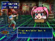 Segagaga’s story begins in 2025, so the translation team had hoped to release their patch last year to coincide with the game’s timeline. Anticipation among Sega fans grew with each screenshot and gameplay clip shared. But the year ended with no release. The team decided not to rush the patch out, choosing instead to thoroughly test it before making it public. While the team missed their initially envisioned — and rather poetic — deadline, they did manage to get their translation out just in time for the 25th anniversary of Segagaga ’s release, which is proudly displayed on the VMU screen while playing the patched game — shown below. An interview with ExxistanceSHIRO! spoke with Exxistance about the Segagaga patch, and here is what he had to say. SHIRO!: What was your past experience with this game? Exxistance: As a fan! IIRC, I first read about it in the Official Sega Dreamcast Magazine waaaay back when I actually subscribed to it. I’ve always loved JRPGs, and Sega, so the game always seemed like this incredible combination to me. It was just so inaccessible, though, with nary any English anywhere. SHIRO!: How did you come to work on the Segagaga patch? Exxistance: By happenstance really. I did my “every-several-years-of-Googling” for the latest on an SGGG patch and found the ongoing thread on Dreamcast-Talk . I read through all the posts and, if I remember correctly, ateam had posted a texture extractor tool, so I just started looking through the various texture containers. That’s when I thought to start redrawing them, so that at least one roadblock in the translation would be out of the way for whoever wanted to do the rest. SHIRO!: What was a highlight of this specific project? Exxistance: